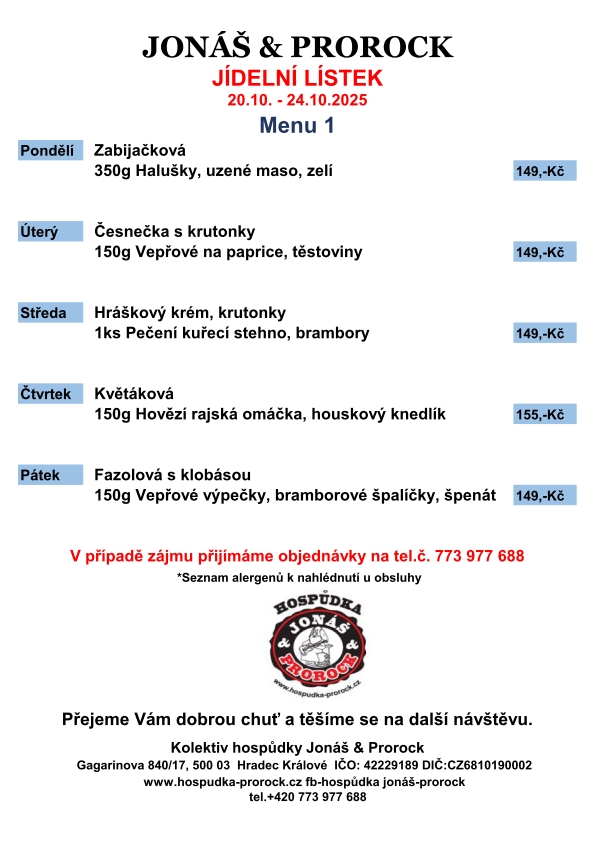 JÍDELNÍ LÍSTEK